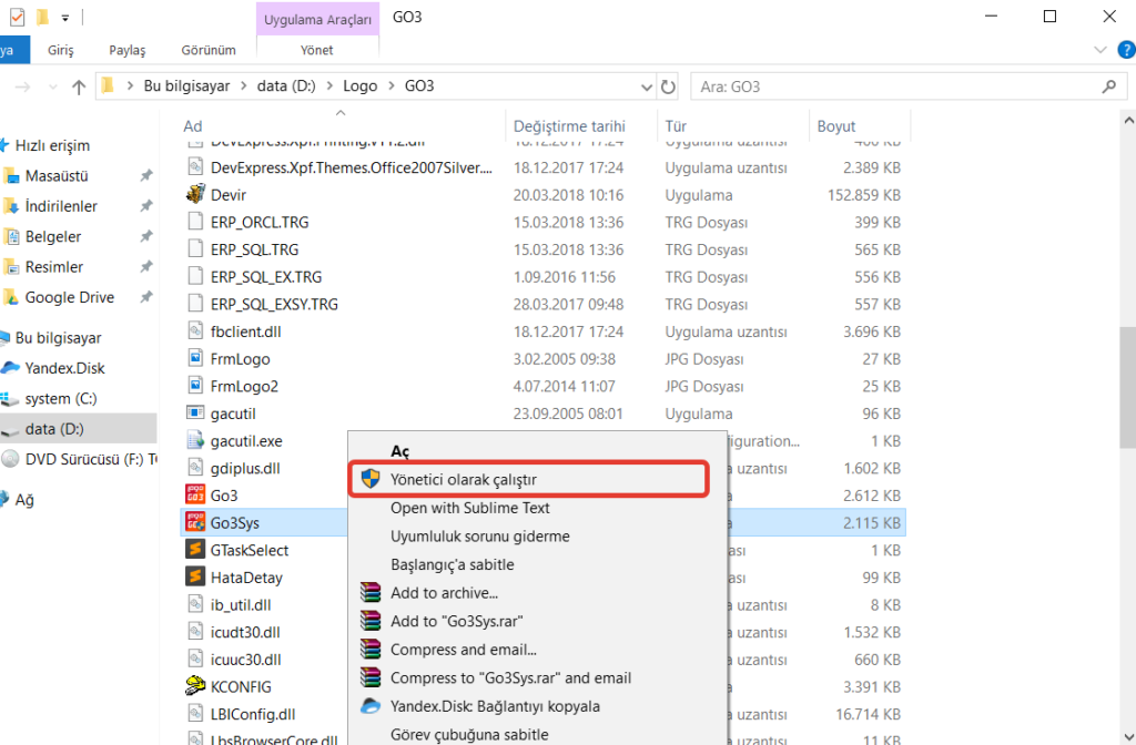 Dikkat edilmesi gereken önemli bir konu, eğer hata verir ve açılmazsa, ilgili uygulama üzerinde sağ tuş yapıp YÖNETİCİ OLARAK ÇALIŞTIR seçeneği ile açmalısınız.