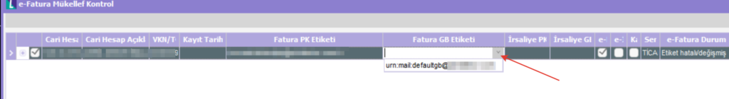 - Aynı işlemi Fatura GB Etiket alanı için de uygulayın.