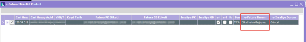 Açılan ekranda genellikle kırmızı renkte “Etiket Hatalı / Değişmiş” uyarısı görüntülenir.