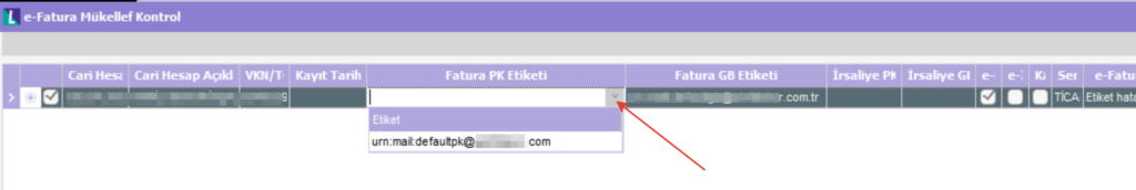 - Fatura PK Etiket alanına tıklayın ve listeden güncel etiketi seçin.