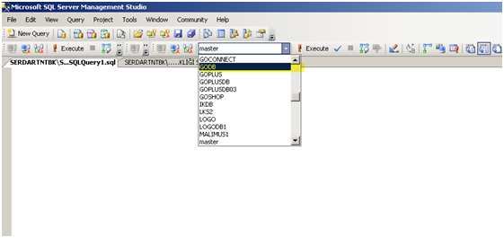 Not: Doğru veritabanının seçildiğinden emin olun.
